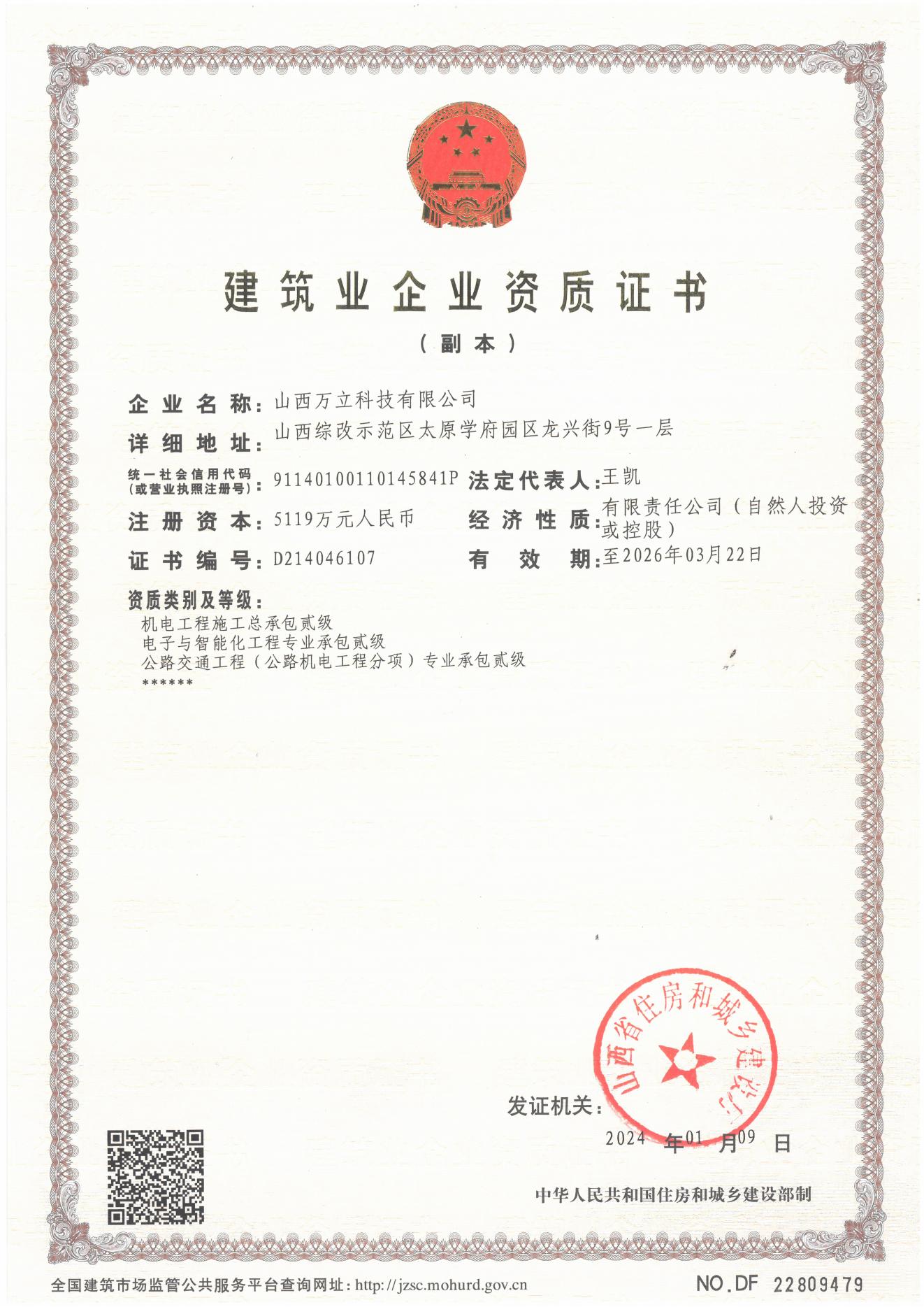 万立科技现有公路计重收费与超限检测系统、绿色通道快检系统、煤炭产量监测系统、筒仓定量装车系统、安防及自控系统、工业电力需求侧企业能效管理系统等六大系统,200余款产品,畅销山西、内蒙、河北、山东、河南、甘肃、江苏等国内多个省市。