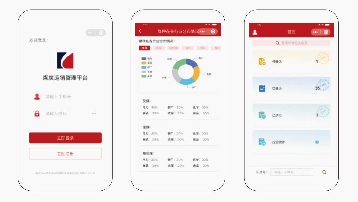 煤炭运销管理平台覆盖合同签订、订单下发、车辆调度、运输监控、数据分析等全流程管控,满足集团公司对合同 、调运单 、指令单、拉运计划、派车单、车辆过磅数据等数据信息综合管控,并通过大数据完成信息的统计、分析,为管理决策提供依据。