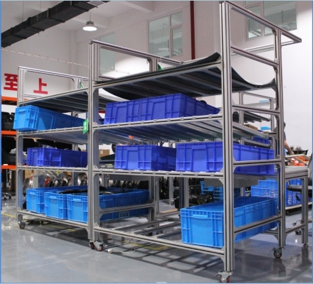 ·先进先出式货架,货物从货架的背后放入,前面取出,可与标准塑料周转箱或纸箱配合使用。